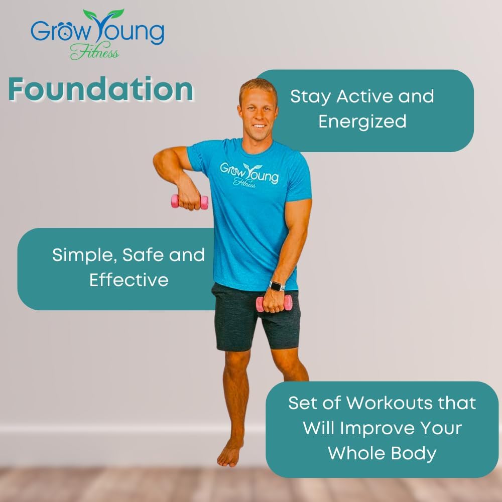 SAFE & LOW IMPACT – Grow Young Fitness designs workout routines and exercise equipment for seniors. Never get on the floor or risk injury with these simple, senior exercises! This senior fitness DVD set is perfect for people over 50 that are looking to stay active while being safe and reducing muscle strain