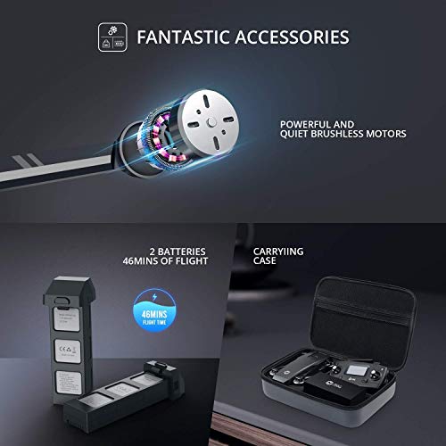 4K EIS Anti-Shake Camera with Sony Sensor: The EIS (Electric Image Stabilization) technology reduces blurring and ensures video quality; Sony Sensor is equipped with advanced image-capture technologies for superior image quality compared with other common sensors; Pictures taken with the 4k(3840 x 2160) camera catch much more details; Videos recorded with 1080p@60fps/4K@30fps play more smoothly; besides, 5GHz FPV transmission enables longer and smooth image transmission.