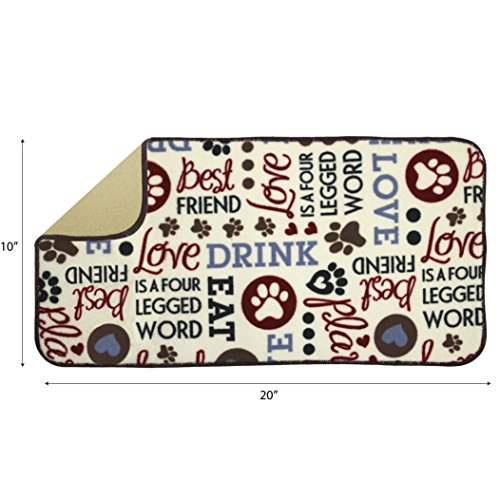 Kitchen Basics Microfiber Pet Bowl Feeding Mat, Anti-Skid and Absorbent, 10 Inch x 20 Inch