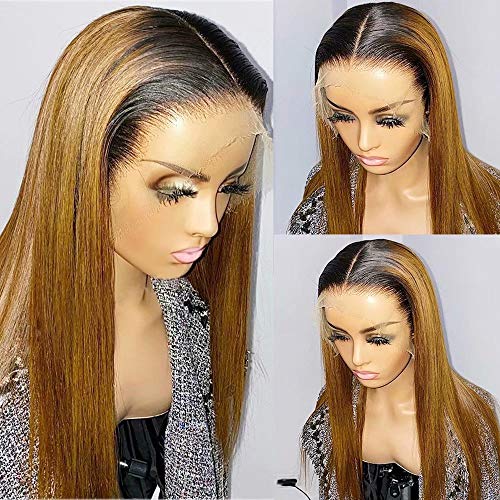QUINLUX WIGS Honey Blonde Straight Human Hair Wigs 180 Density #1bT27 Ombre Highlight Human Hair Wigs HD Transparent…